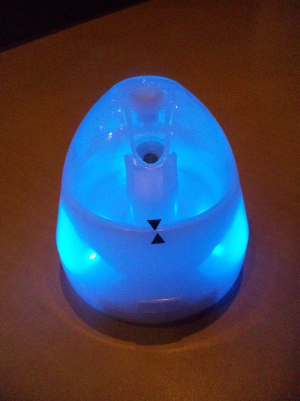 この写真の怪しく光っている物はお店に新しく来た加湿器です♪